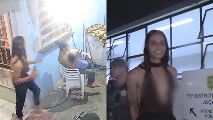 Ewerton Adalberto dos Santos, who also goes by the female name “Ewellyn,” then casually approaches and enters her residence. He appears to retrieve a knife from the kitchen, and then storms out the front door to stab de Castro, who is reportedly a mother of 10 children, in the neck.