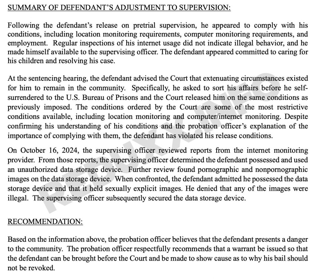 Significantly, his letter inadvertently revealed that he would have been actively attending meetings with politicians and political organizations with his son even after pleading guilty to the child pornography charges from his 2022 case.